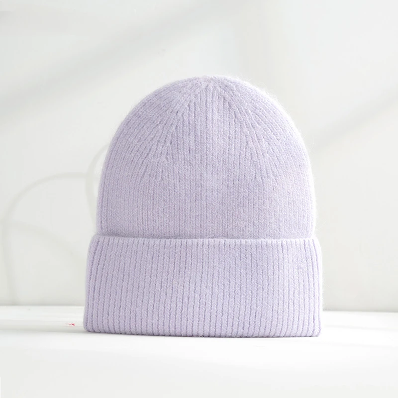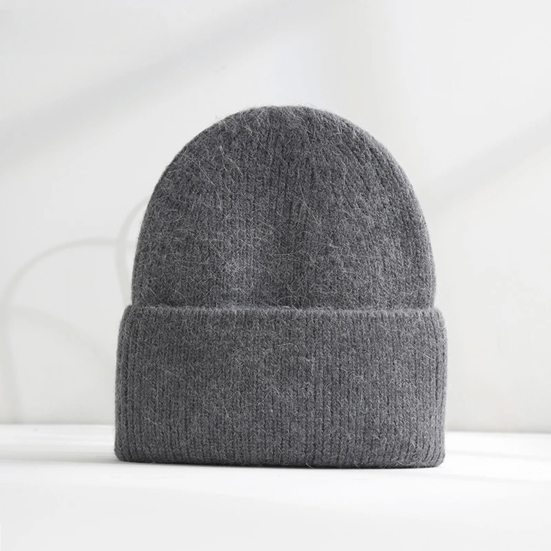 Fluffy Angora Hat Rabbit Fur Warm Winter hat For Womans Cashmere Wool Soft Beanies Blue Knitted Hat Outdoor Ski Female
